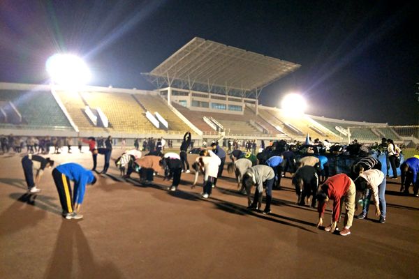 冬训队员做准备活动