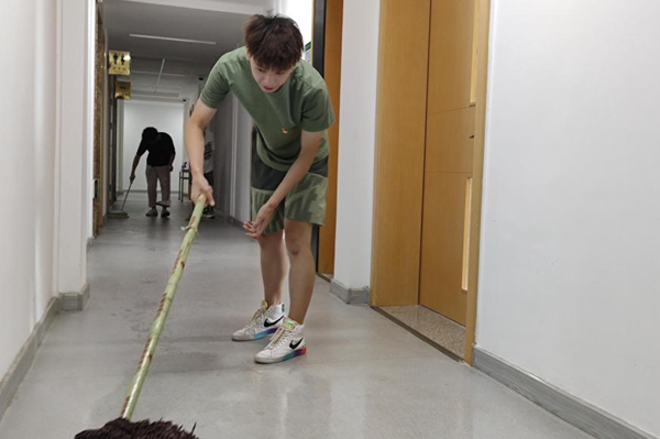 在进行简单的任务分配后,各小组在组长带领下对久久热 楼以及社区附近区域进行了认真清扫。活动中,同学们以积极能动的态度进行每一处角落的清理,晾晒抹布、拖地扫地、换水、擦围栏玻璃,不抱怨、不喊累,相互配合,以当代优秀大学生的标准要求自身,在劳动的同时也不忘讨论如何更好的打理并建设全新的久久热 环境。