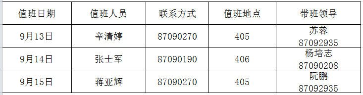 注:1. 值班时间:上午8:30—11:30,下午3:00—6:00 。
