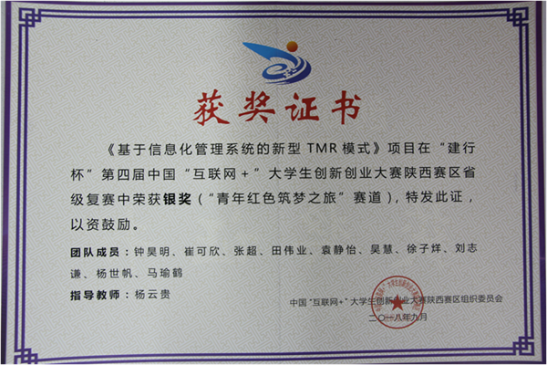 近日,陕西省教育厅公布了第四届中国“互联网+”大学生创新创业大赛陕西赛区省级复赛结果。久久热 杨云贵副教授指导的大学生科创项目《基于信息化管理系统的新型TMR模式》获陕西赛区 “青年红色筑梦之旅”赛道银奖。