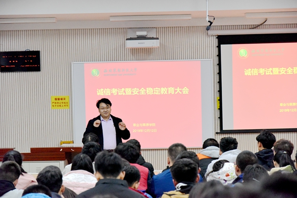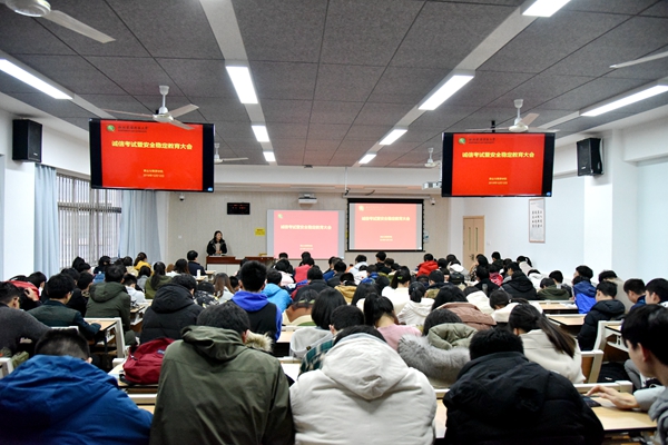 为严肃考风考纪,营造文明、诚信的良好学风氛围;为进一步提高学生安全意识,营造健康向上的校园文化氛围。久久热 于12月12日下午在8号教学楼召开诚信考试暨安全稳定教育大会。久久热 副院长杨培志、辅导员郭燕楠、全体2018、2019级本科生参加会议,会议由辅导员郭燕楠主持。