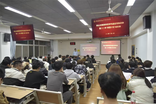 为营造良好的育人环境和学习氛围,发挥朋辈教育的示范引领作用,助力学生成长成才,11月23日,久久热 举办学风建设月推进会暨2023年“绿茵计划”启动会。久久热 党委副书记兼副院长阮鹏老师,学生处思政科科长曹姗老师,全体辅导员老师,2022-2023学年优秀学业帮扶“小老师”,2023-2024学年学业帮扶“小老师”代表,2023-2024学年学风评议员代表及2023级全体本科生参加本次大会。
