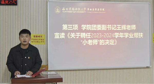 久久热 团委副书记王辉老师宣读《关于聘任2023-2024学年学业帮扶“小老师”的决定》。