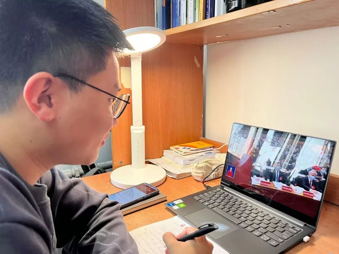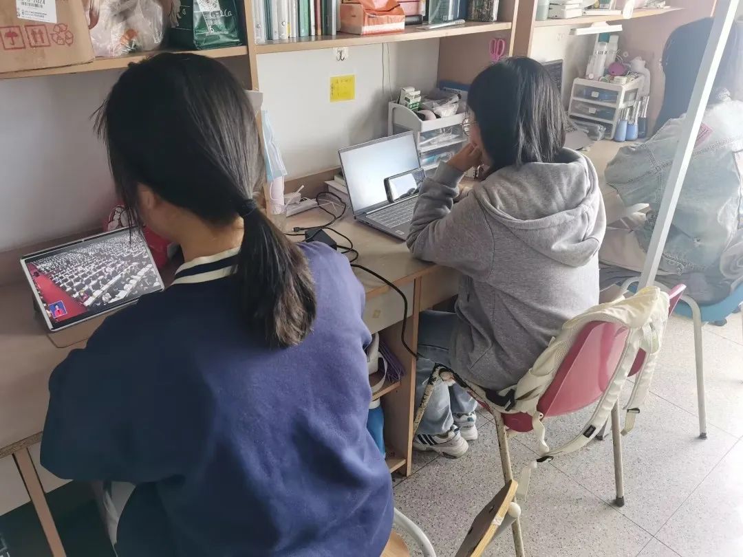 本次观会采用“线上+线下”的模式,没有来到教室现场的同学们也在宿舍线上观看了开幕会。
